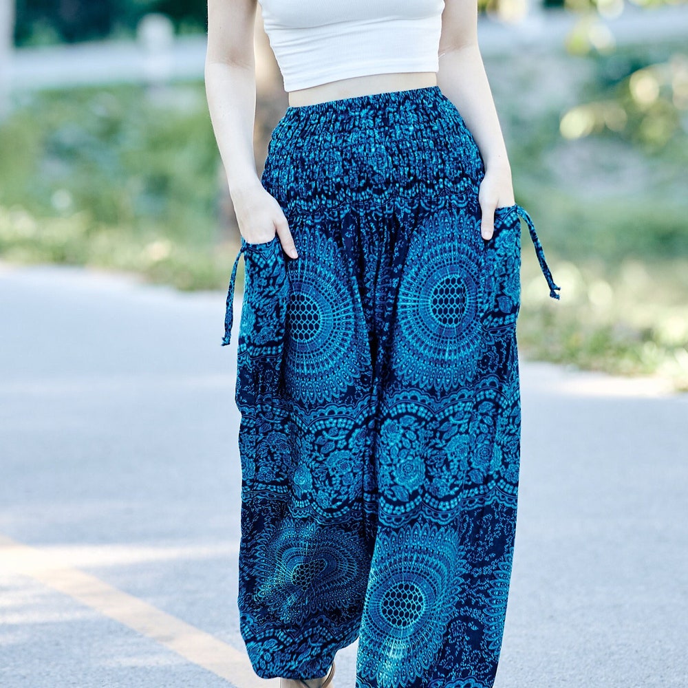 Teal Harem Yoga Pants Women Hippie Pant Loungewear Boho Trousers Loose Festival Clothing Summer Clothes Beach Wear – Birthday Gift for Her