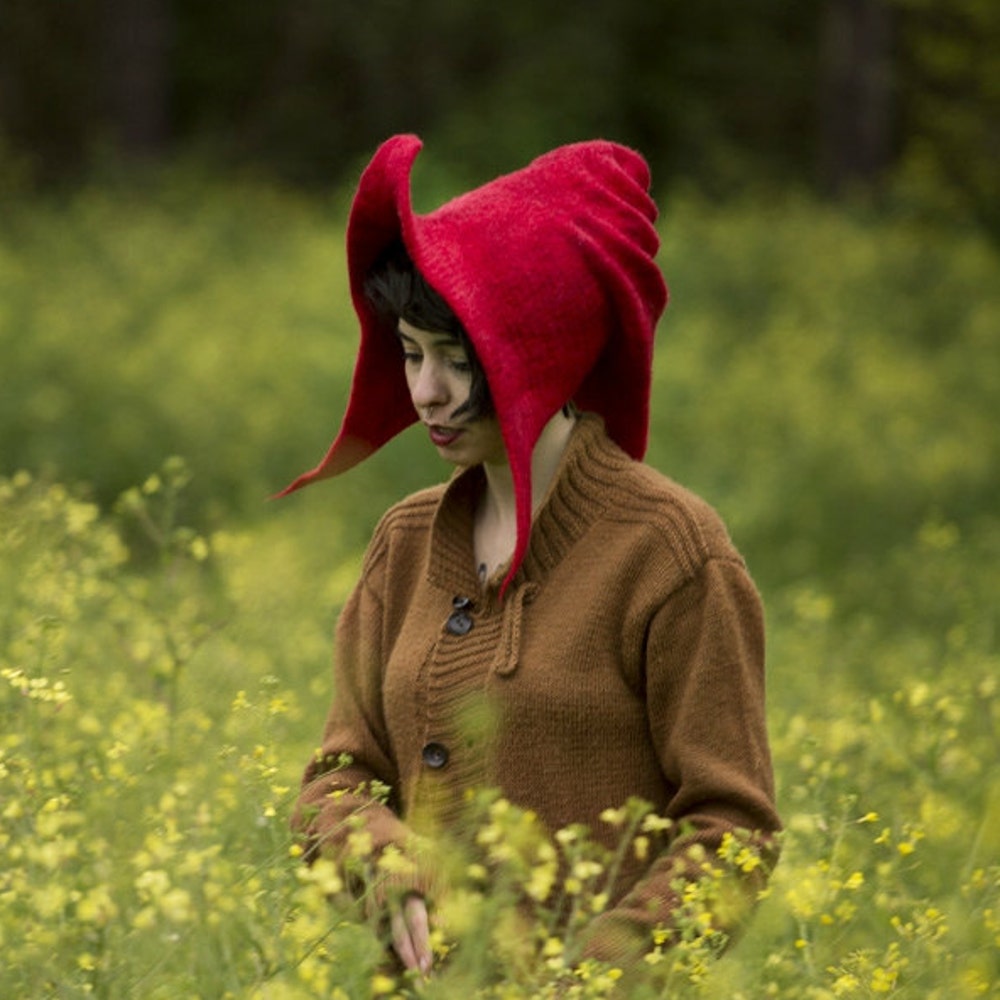 Unique fashionable red hat, unusual chic winter cap, one of a kind christmas gift for her, Bold Fashion, Trendy Eye-Catching Headwear