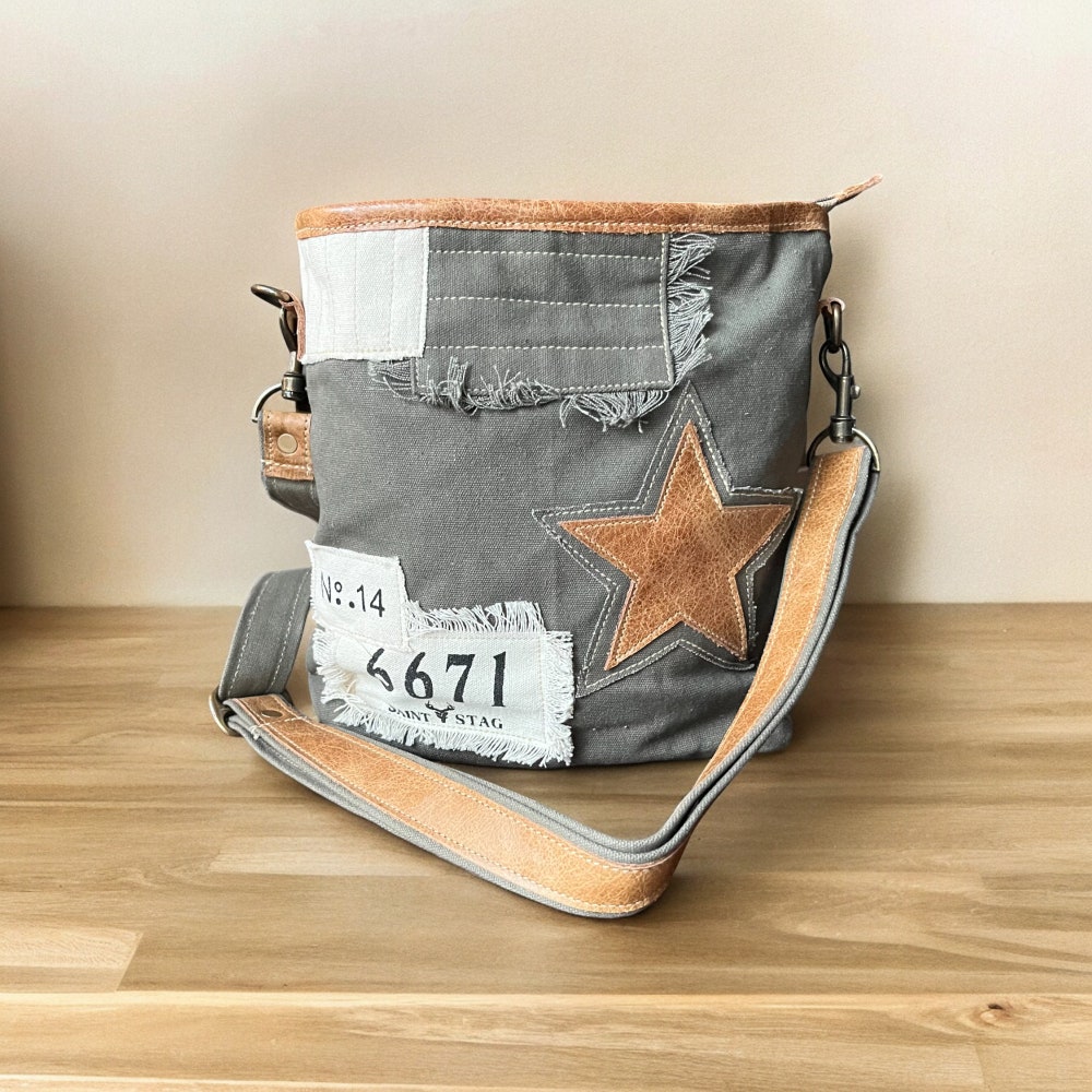 Vintage STAR Leather Crossbody Canvas Bag| Messenger bag for women | Shoulder Bag Adjust | Upcycled Handmade Fashion Accessories Myra bag